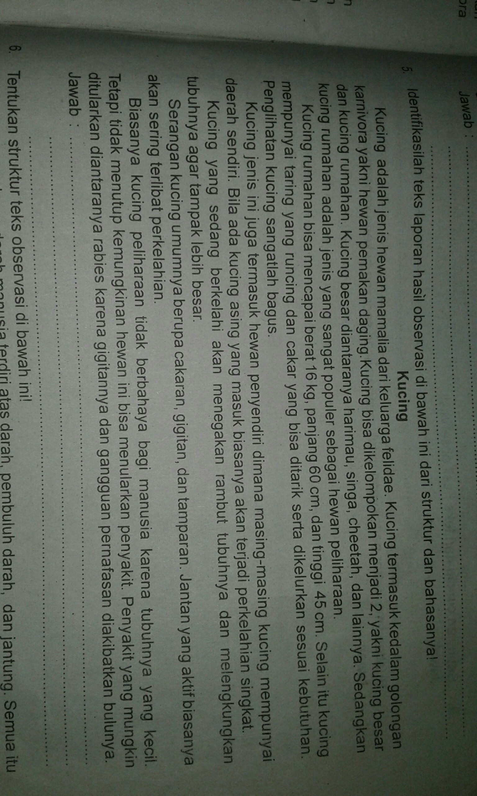 Contoh laporan hasil observasi kucing. Kucing termasuk ke dalam jenis hewan mamalia yang termasuk sebagai karnivora atau pemakan daging. Berisi keterangan umum tentang subjek yang dilaporkan. Contoh teks laporan hasil observasi tentang hewan kucing beserta strukturnya berbagai teks penting source: Kucing adalah jenis hewan mamalia dari keluarga felidae. Kucing termasuk kedalam golongan karnivora yakni hewan pemakan daging. Contoh teks laporan hasil observasi ( kucing ) kucing adalah jenis hewan mamalia dari keluarga felidae. Kucing adalah hewan golongan mamalia, yaitu hewan melahirkan dan menyusui. Penyakit yang mungkin ditularkan diantaranya rabies akibat dan gigitannya dan gangguan pernafasan oleh bulunya. Teks laporan hasil observasi : Terdapat dua jenis kelompok kucing, yaitu . Kucing merupakan binatang peliharaan yang paling populer. Hewan ini juga termasuk kedalam golongan karnivora .